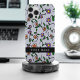 Coque iPhone Fleurs Colorées, Fond Bleu, Noir