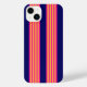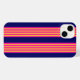 Coque iPhone Fuchsia et rayures jaunes avec bleu marine