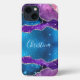 Coque iPhone Galaxy violet, bleu marbré Agate et Parties scinti