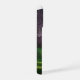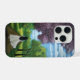 Girl in White Dress A girl in a white dress walking down a path lined with green and purple trees