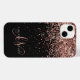 Glam Rose Gold Parties scintillant coque iphone monogramme élégant. Personnalisez facilement ce design branché de boîtier de téléphone chic avec une élégante parties scintillant brillante d'or rose sur un arrière - plan noir. Le design comprend votre monogramme manuscrit avec de jolis tourbillons et nom.
