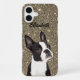 Pour l'amoureux des chiens de Boston Terrier, c'est un grand cadeau personnalisé. Le Boston Terrier est assis sur un arrière - plan doré. Personnalisez le boîtier de téléphone avec n'importe quel nom pour le rendre unique.