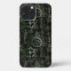 Coque iPhone Grand motif fleuri vert nom personnalisé