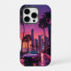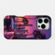Ce boîtier téléphonique Gta 6 montre une voiture rétro cool conduisant sur une route humide avec des palmiers et de hauts bâtiments dans l'arrière - plan. Le ciel violet et rose lui donne un aspect calme et élégant. C'est parfait pour les amateurs de voitures et d'éclairage urbain.