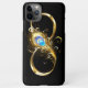 Or, symbole brillant de l'infini, décoré de bijoux plumes paon avec turquoise sur arrière - plan noir.