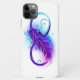 Infinity symbole with a beautiful feather painted in purple and blue bright colors on white background