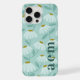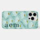 Coque iPhone Initiales de monogramme latéral motif floral bleu