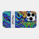 This fun iphone cover is a striking iridescent abalone sea shell pattern in shades of purple, dark and light blue, green, yellow and orange. Personalize with your name in the template provided. This phone case is unique, artsy, funky and definitely fun to own!