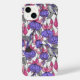 Motif vectoriel sans soudure avec fleurs fuchsia dessinées à la main et colibris