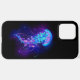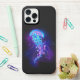 Grande méduse bleue, artistiquement dessinée, brillante, brillante, avec de longues tentacules sur arrière - plan noir avec bioluminescence violette. Méduse brillante.