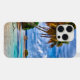 Beau ciel d'été bleu vif sur un océan bleu turquoise aqua et palmiers verts et feuillage sur une plage hawaïenne. Un design hipster original, élégant et funky a été créé pour les amoureux de la faune et de la flore, Hawaï, des plages et du sable, des vacances, et les voyages dans des endroits exotiques et des pays du monde. Belle couverture moderne et cool pour le brancheur tendance et amateur d'art branché, amoureux de motifs artistiques qui veut protéger leur téléphone de la poussière et de la saleté, de l'usure et de la déchirure. Cette conception est disponible pour les coques de téléphones portables Apple iPhone 6, 7, 8, 10 ou X, XR, XS, 11, 12, 13 Mini 14, 15 Plus et Pro Max. Montrez votre style, regardez à la mode, et sentez élégant avec un design unique sur un accessoire mobile de votre choix.