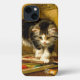 coque iphone mettant en vedette le tableau à huile de Henriëtte Ronner-Knip The Young Artist (1821-1909). Un chaton noir et blanc joue avec un set de peinture et deux brosses. Un cadeau adorable pour les amoureux de les chats et les amateurs de romantisme.