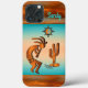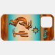 Personnalisez ce coque iphone cellulaire unique "Un d'un genre" au sud-ouest de Kokopelli! Il comprend une Kokopelli sud-ouest en cuivre jouant la Flûte et dansant autour d'un cactus sous le soleil...sur un Arrière - plan de coucher de soleil Turquoise et Orange...Entouré de Frontières en cuivre ! ! Design D'Art Original Par L'Artiste Kerry Miller.