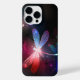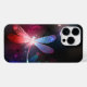 Lumineuse, volante, libellule rouge, avec des ailes transparentes et détaillées sur arrière - plan sombre, nocturne, lumineux avec plantes tropicaux et lucioles. libellule rouge.