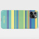 Boîtier téléphonique motif à rayures rayées de couleur jaune, vert citron, bleu foncé, orange d'été brillant et jaune. Avec la possibilité de customiser avec un nom, un monogramme ou des initiales de votre choix. Belle couverture moderne et cool pour le brancheur tendance et amateur d'art branché, amoureux de motifs artistiques qui veut protéger leur téléphone de la poussière et de la saleté, de l'usure et de la déchirure. Cette conception est disponible en coques de téléphones portables Apple iPhone 6, 7, 8 Plus, 10 ou X, XR, XS, 11, 12, 13 Mini, 14, 15 Plus et Pro Max. Montrez votre style, regardez à la mode et sentez élégant avec un design unique sur un appareil mobile de votre choix.