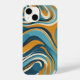Coque iPhone Liquid Swirl Ochre Blue Trippy Pattern