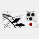 Bird silhouettes looking at a heart. Red accent on black and white. For phones other than iPhone, you may have to click customize to move the image, depending on where your device has the camera lens.