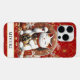 Make a statement with this iphone 16 pro max phone case that features a Lucky Cat with gold coins and flowers around it on a red and gold background. It's modern yet traditional Japanese Maneki-neko is designed to attract good fortune, prosperity and customers into your business. The right paw raised brings money and wealth and the white cat symbolizes general happiness. It becomes uniquely yours with your name in a CAP font in black. Invite luck and prosperity into your life!