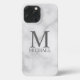 Coque iPhone Marbre blanc Monogramme personnalisé et nom