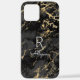 Coque iPhone Marbre noir et or, do-it-yourself Nom blanc & Mono