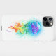 Grande méduse irisée, artistiquement dessinée, brillante, avec de longues tentacules sur le blanc, peinte sur l'arrière - plan multicolore. Méduse arc-en-ciel.