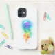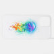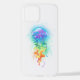Grande méduse irisée, artistiquement dessinée, brillante, avec de longues tentacules sur le blanc, peinte sur l'arrière - plan multicolore. Méduse arc-en-ciel.