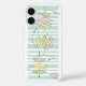 Un étui téléphonique de style moderne du milieu du siècle avec des formes géométriques en diamant disposées sur un arrière - plan rayé turquoise aux couleurs de l'ère atomique populaire. Conçu pour iPhone.