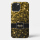 Personnalisez le faux coque iphone brillant avec votre initiale et votre nom. De belles parties scintillant dorées jaunes brillantes brillent. Photo Golden sparkles pas de parties scintillant réelles!