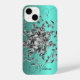Monogram Initials Vins et Feuilles en gris argenté et noir. Parfait pour un cadeau personnel pour elle. Grand cadeau de Noël Saint Valentin ou Anniversaire aussi! iPhone 14 Plus Pro Max