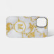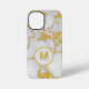 Étui élégant motif marbre blanc et or personnalisé avec monogramme M pour iPhone 12 Mini.