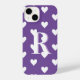 Coque iPhone Monogramme moderne Motif de coeur violet blanc