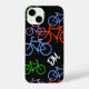 Voici un coque amusant que n'importe quel cycliste aimerait ! Des bicyclettes rouges, bleues, violettes et vertes aux couleurs vives sont disséminées sur un arrière - plan noir. Votre monogramme de deux lettres se distingue en blanc.