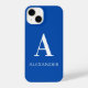 Coque iPhone Monogramme personnalisé Nom bleu moderne