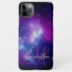Créez votre propre étui de téléphone monogrammé blanc et violet pour son anniversaire. Customisez l'élégant style de calligraphie moderne violet, noir et blanc, taille et couleur du nom et de l'initiale. Selon la longueur de votre nom, vous pourrez augmenter la taille du nom et/ou du monogramme si vous le souhaitez. Vous pouvez conserver ou supprimer le texte de l'ombre portée conçu pour aider le monogramme à se démarquer de l'image arrière - plan. L'exemple de photo est une jolie image spatiale adaptée de façon créative d'une capture Hubble de la NASA du Galaxy Cluster MACS J0717. Les couleurs principales de la photo sont le noir, bleu marine, bleu, magenta, violet, blanc avec des zones nuageuses brumeuses et scintillantes étoiles. Retirez ou conservez l'option de superposition du filtre photo dans le système lorsque vous customisez cette conception.