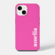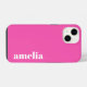 Boîtier de téléphone mignon qui comporte votre nom ou vos initiales monogramme dans une police de caractères en gras blanc populaire sur un arrière - plan rose chaud. Vous pouvez ajuster la taille du texte dans l'outil de conception pour des noms plus courts ou plus longs.