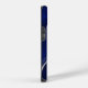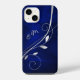 Voici un élégant boîtier téléphonique qui présente une feuille d'argent moderne tourbillonnant contre un profond arrière - plan bleu royal dégradé. Votre monogramme de deux lettres est à gauche en argent assorti.