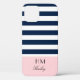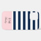 Élégant et tendance Bandes Nautiques Rose et Bleues avec initiales noires boîtier de téléphone monogrammed