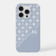 Coque iPhone Motif à carreaux de fleurs blanches sur bleu Dusty