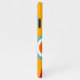 Beaux cercles et lignes géométriques contemporains bleu azur, rouge rose, orange et blanc de couleur vive et motif sur un arrière - plan jaune foncé. Avec l'option de customiser ou de personnaliser avec un nom, un monogramme ou des initiales de votre choix. Design orné, élégant, élégant, élégant et éclectique pour la fashionista artistique sophistiquée, la diva de mode artistique, populaire branché, style d'art rétro vintage, et abstrait amateur de motifs géométriques numériques. Cette conception est disponible en Apple iPhone 6, 7, 8 Plus, 10 ou X, XR, XS, 11, 12, 13 Mini, 14, 15 Plus et coques de téléphones portables Pro Max. Montrez votre style, regardez à la mode, et sentez élégant avec un design unique sur un accessoire mobile de votre choix.