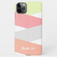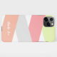 Motif d'un arrière - plan blanc, il est contemporain et élégant, vert citron vert pastel, orange clair et clair, rose corail et rose pâle et gris rayé. Avec l'option de customiser ou de personnaliser avec un nom, un monogramme ou des initiales de votre choix. Un design joli, moderne et joli pour les amateurs de minimalisme coloré, simple mais élégant, motifs. Belle couverture moderne et cool pour le brancheur tendance et amateur d'art branché, amoureux de motifs artistiques qui veut protéger leur téléphone de la poussière et de la saleté, de l'usure et de la déchirure. Cette conception est disponible en coques de téléphones cellulaires Apple iPhone 6, 7 et 8 Plus, 10 ou X, XR, XS, 11, 12, 13 Mini, 14, 15 Plus et Pro Max. Montrez votre style, regardez à la mode, et sentez élégant avec un design unique sur un accessoire mobile de votre choix.