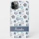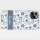 Motif aux fleurs bleues et turquoise. Personnalisez votre étui téléphonique avec votre nom.