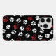 Joli, amusant et adorable motif avec pattes blanches et rouge et coeurs sur arrière - plan noir. Un cadeau moderne et tendance, parfait pour l'amoureux des chiens dans votre vie.