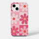 Un charmant et vibrant motif d'inspiration rétro avec des marguerites stylisées disposées dans une grille en damier. Les fleurs alternent entre un rose plus foncé et un rose plus clair, presque blanc, avec chacune un centre orange ou rose plus clair, dressé contre des nuances alternées d'arrière - plans roses. Ce design évoque une esthétique nostalgique de "puissance des fleurs".