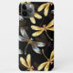 Motif sans couture avec or, bijoux, libellules brillantes avec ailes détaillées et pétillantes sur arrière - plan noir. libellule d'or.