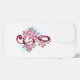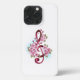 Pink treble clef with delicate, detailed pink Japanese cherry blossoms against white background painted over with light blue paint Blooming pink sakura.