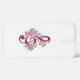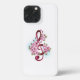 Pink treble clef with delicate, detailed pink Japanese cherry blossoms against white background painted over with light blue paint Blooming pink sakura.
