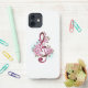 Pink treble clef with delicate, detailed pink Japanese cherry blossoms against white background painted over with light blue paint Blooming pink sakura.