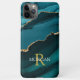 Personnalisez ce Agate Turquoise et noir design et tendance avec votre nom et votre Monogramme en texte or et blanc. Ce design ne manquera pas d'attirer l'attention.