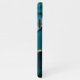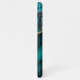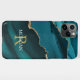 Coque iPhone Nom & Monogramme, Agate noir Turquoise, Texte blan
