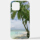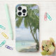Coque iPhone Palmiers, Votre Photo, Nom Script Bleu